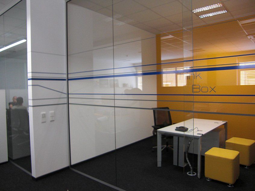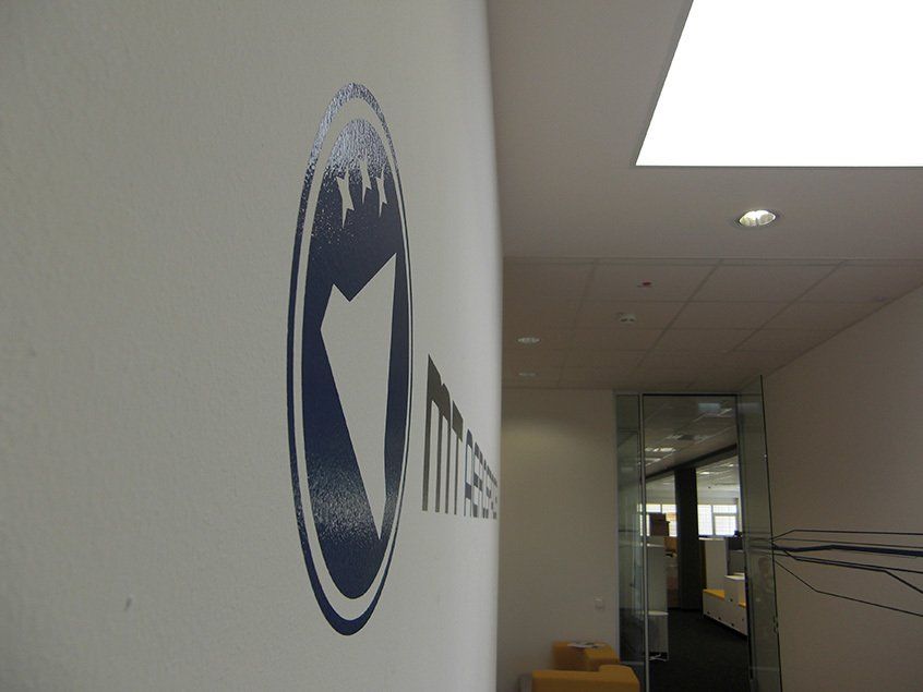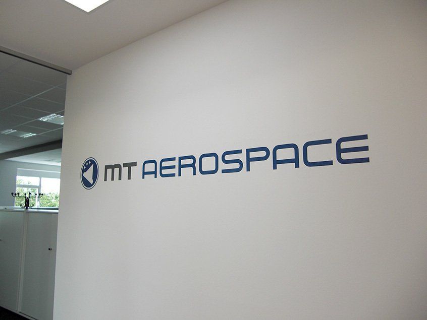 Mehrfarbige Wandgestaltung mit Folie nach den Gestaltungsvorgaben der MT Aerospace AG