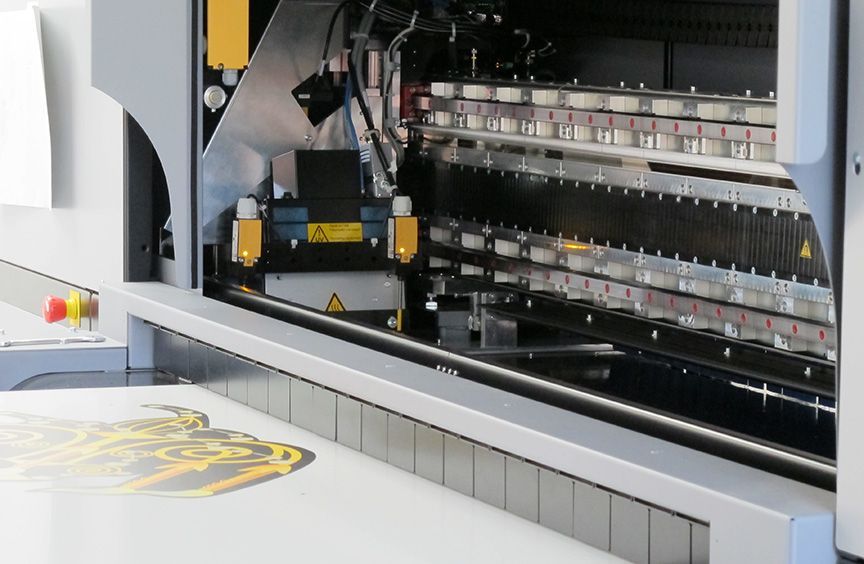 Fine Art Printing Qualität in brillanten Farben und hoher Halbarkeit. Für gestochen scharfe Bilder und Schriften. Die maximale Druckauflösung liegt bei 1.428 dpi. Greyscale Druckkopftechnologie.In einem Arbeitsgang drucken wir die Sonderfarbe weiß vor und/oder nach den CMYK-Farben. Die ideale Lösung zur schnellen Produktion von Aufklebern, Schildern oder Magnetfolien. Durch den Weißdruck ist selbst die Herstellung von Drucken auf transparenten oder dunklen Folien oder Materialien möglich. Die Portalhöhe von 50mm erlaubt die Bedruckung starrer Medien bis zu einer Breite von 1.600mm. Durchn die Weiterverarbeitung mit CAD-Fräsen produzieren wir individuelle Displays und Werbeeaufsteller